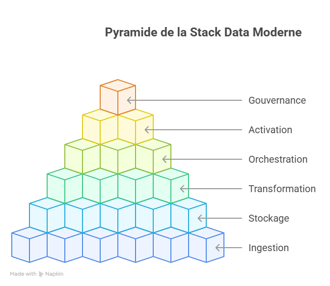 Construire une infrastructure Data moderne ressemble à une chaîne logistique. Chaque brique a un rôle précis. C'est l'ensemble qui crée de la valeur.